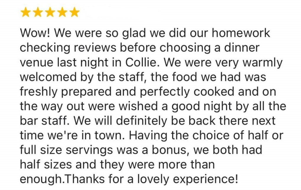 The Heart of Collie. Icy cold tap beer, Great meals, Dining Room, Balcony, Pool tables and Beer Garden. Feel free to get in touch with us via email or phone